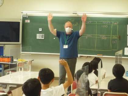 今日はいつものALTの先生とは違う先生と学習しています。とてもユニークな先生で楽しそうです。