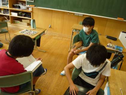 友達と問題を出し合ったり、出された問題について調べたりして、まとめてストに向けて学習したことを確認しています。