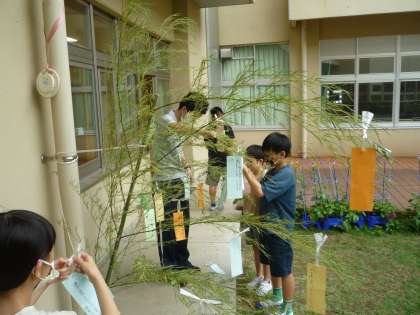 他の学年を楽しませようと企画した七夕フェスティバルですが、準備をしている5年生もとても楽しそうです。