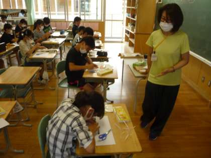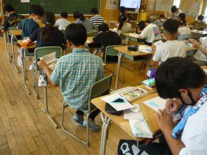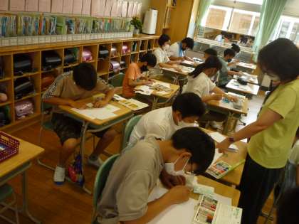 画用紙に塗ったクレヨンを指でぼやかしたり、隣の色と混ぜたりして、グラデーションを楽しんでいます。