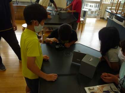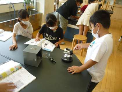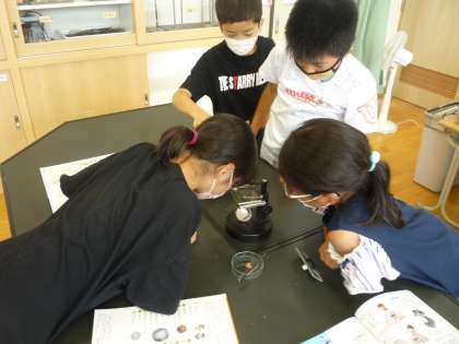 解剖顕微鏡の使い方を勉強しました。メダカやたまごを観察します。