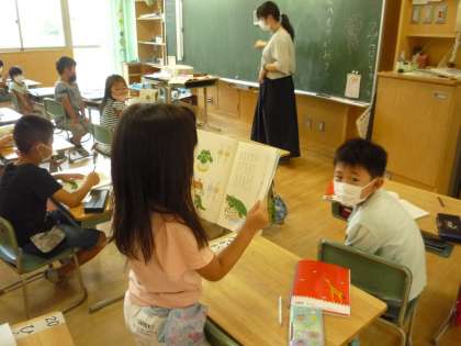 音読練習では、リズムに合わせて読んだり、早読みをしたりしながら楽しんでいます。