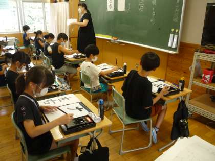 書写では「左右」という字を上下のバランスを意識して書きました。