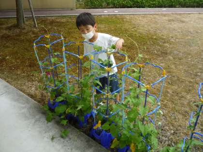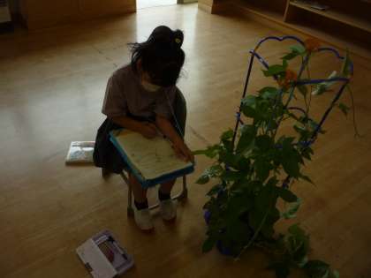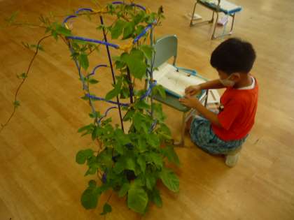 アサガオの最後の観察です。夏休みは、家に持ち帰り大切に育てます。