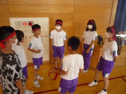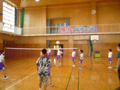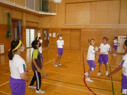 ビーチバレーの学習の様子です。作戦を話し合ったり、つなぐ練習をしたりしています。