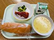 本日の献立は、コッペパン、魚のチリソースかけ、ゆでブロッコリー、コーンポタージュ 牛乳です。