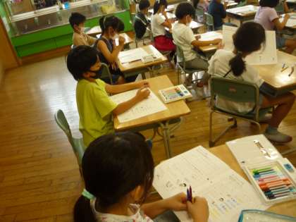 「わたしの健康」を使って、1学期の生活や体力つくり等を振り返りました。