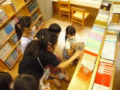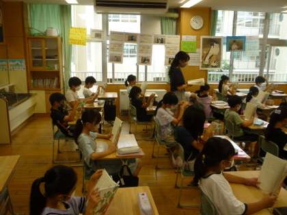 教科書に載っているノンフィクションの物語教材を読みました。その後、図書室で夏休みに読む本を借りました。