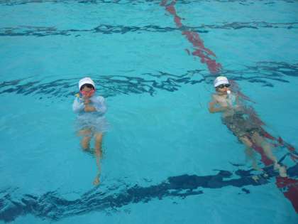 仰向けで浮くことを怖がっていた子供たちも、慣れてくると上手に浮いていました。