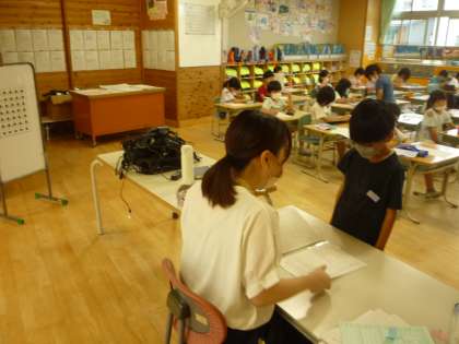 担任から一人一人にあゆみが手渡されました。頑張ったことや成長したことを伝えています。