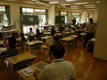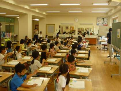 浸水の被害で、1年生教室をランチルームに移動しました。今後、1組と2組が教科や活動に応じて合同で学習したり、別々で活動したりします。新しいクラスメートに緊張しているものの嬉しそうです。とてもよい刺激になっており、落ち着いて学習に望んでいます。