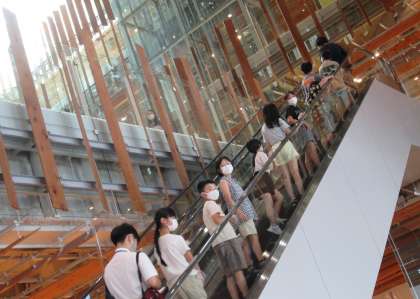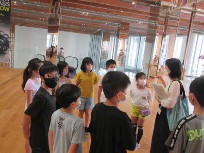 富山市ガラス美術館・富山市立図書館本館を見学しました。ガラス美術館では、職員の方が一つ一つの作品について丁寧に解説してくださり、見たことや感じたことを話し合いながら展示を回りました。「この作品、好きだな。」「まるで○○みたい。」と呟く姿が見られました。図書館では、普段見ることのできない書庫等も見学させていただき、新しい気付きや発見が多くありました。