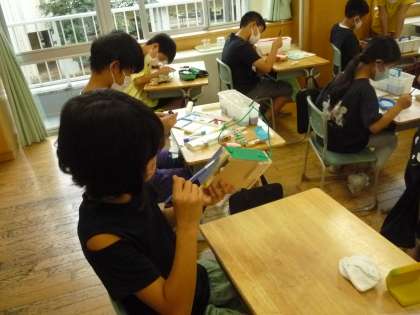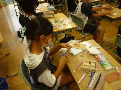 「ギコギコトントン クリエーター」の学習では、のこぎりや金槌を上手に使って作品を仕上げています。