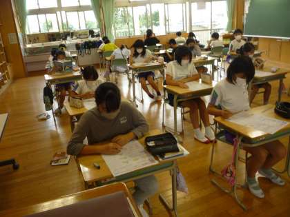 テスト中です。最後まで諦めず、無回答がないように頑張っています。