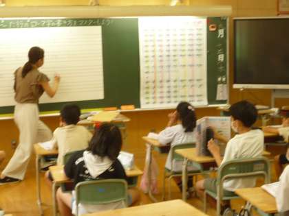 ローマ字の学習に取り組んでいます。パソコンでローマ字入力をしているので、子供たちは馴染んでいるようです。