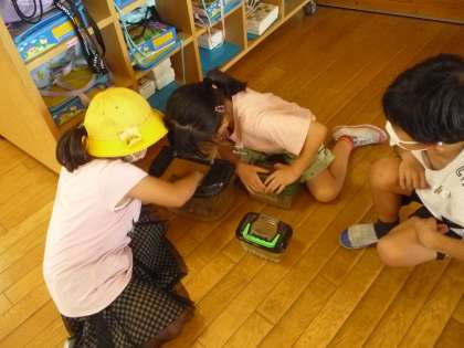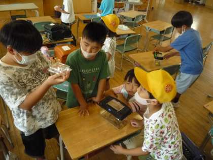 虫が大好きな子供たちです。帰りの準備をしなければならないのに、虫に夢中です。
