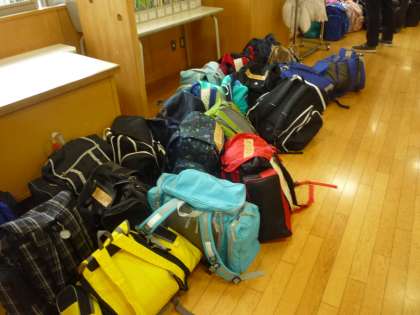 宿泊学習が延期され、学校での学習です。荷物もどこか寂しそうです。