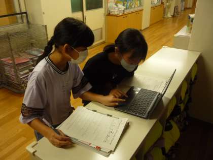 思い出を伝える英文を考えています。クロムブックでスペルや発音を確認しています。