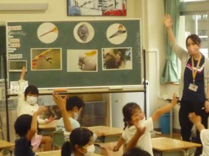 説明文「くつばし」の学習です。問いと答えの文を見つけたり、くちばしの違いを読み取ったりする学習をしています。