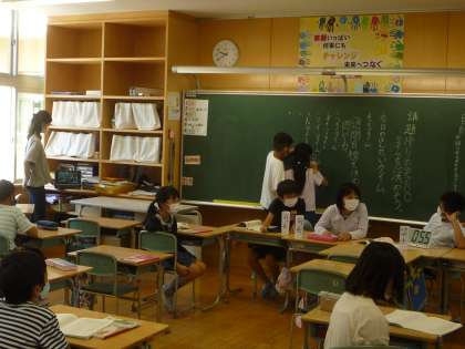 司会や板書、計時等の役割を決め、学級会を進めています。