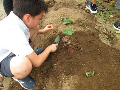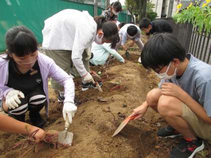 農業クラブで育てていた、サツマイモを収穫しました。大きなサツマイモや小さなサツマイモがたくさん収穫できました。おいしく食べたいですね。