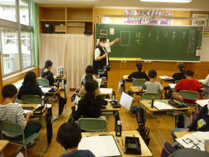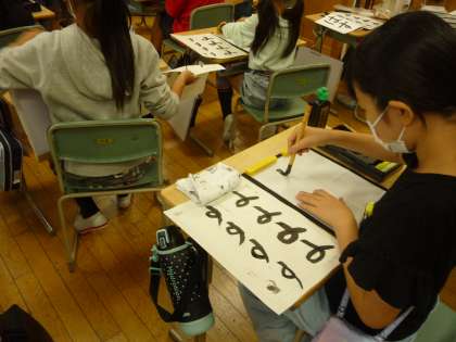 書写では、「はす」を書き、横結び、縦結びの練習しました。