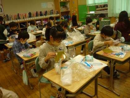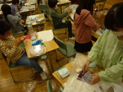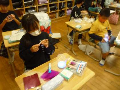 「クリスタル アニマル」の学習では、LEライトで光り輝く生き物を作りました。