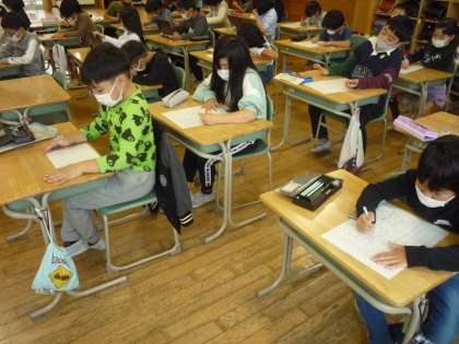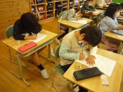 漢字をとても丁寧に練習しています。先生に褒められ、更にきれいに書こうと真剣です。