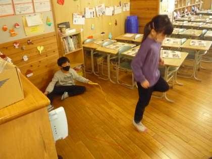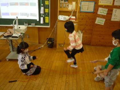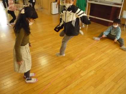 バンプーダンスを練習しました。先ずは、なわとびでを使っての練習です。