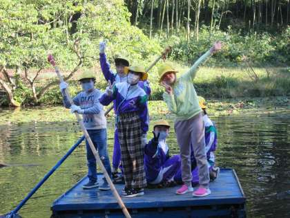森の動物オリエンテーリング、池遊び(いかだ乗り)