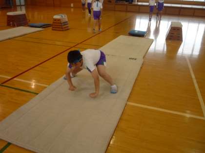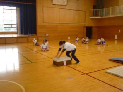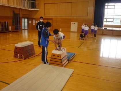 市体育協会の講師を招いて、跳び箱教室を行いました。基本的な動きから練習しました。