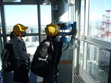 市役所では、展望台に登り、望遠鏡で富山市の様子を眺めました。