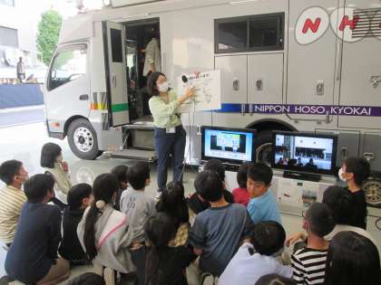 NHK放送局では、一人一人マイクで話したり、カメラで撮ったりなど、たくさんの体験をさせていただきました。