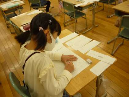 作文の学習では、伝えたいことを短冊に書き出し、内容や書く順番を考えています。