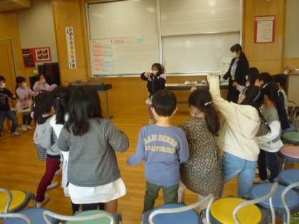 歌を歌ったり、音楽に合わせて体を動かしたりして楽しく学習しています。