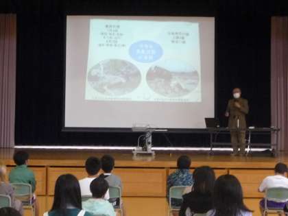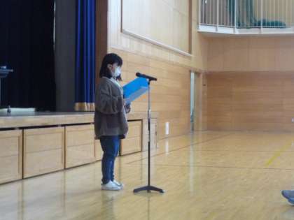 11月22日(火)に、後期「環境チャレンジ10」がありました。6月に環境問題やその対策について分かりやすく教えてくださった関谷さんに、代表児童が夏休みに各家庭で行った「エコ」な取組みについて報告しました。4年生は1人1人がエコ・リーダーズとして、これからも地球のためにできることを考えていくことを関谷さんと約束しました。