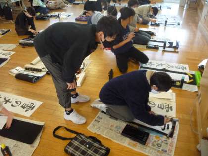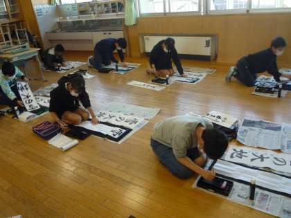 書き初めの練習をしました。一字一字丁寧に練習しています。