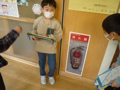 学校内の防火施設を見て回りました。