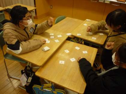 アルファベットのカードを使って、カルタ遊びをしました。今日は小文字に挑戦しました。