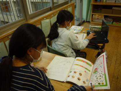 夕食の献立を考えています。栄養バランスや色合いなど栄養表を確認しながら考えています。