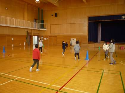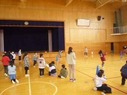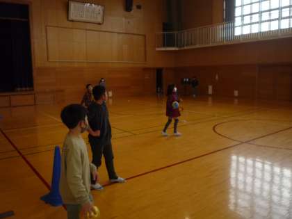 クリスマス集会を企画しました。ゲームの一つに、ドッジボールをして楽しんでいます。