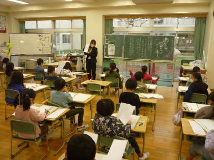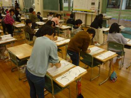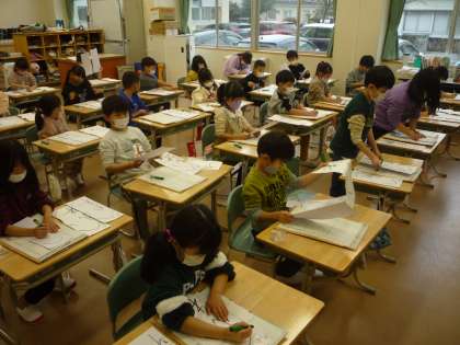 初めての書き初め大会、冬休みに一生懸命練習した様子が伝わってきます。