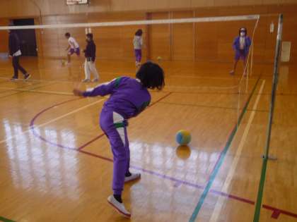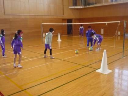 フロアーボールに挑戦しました。ネットの上ではなく、ネットの下を通すゲームです。どんなゲームなのかとても楽しみです。