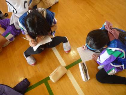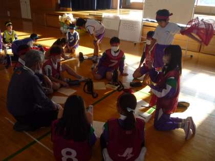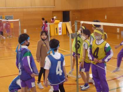 キャッチバレーボールに挑戦しました。初めてのゲームをしてみて、いろいろな作戦が思いついたようです。
