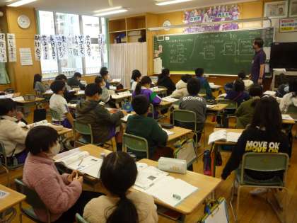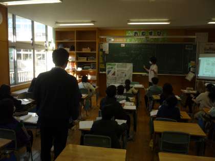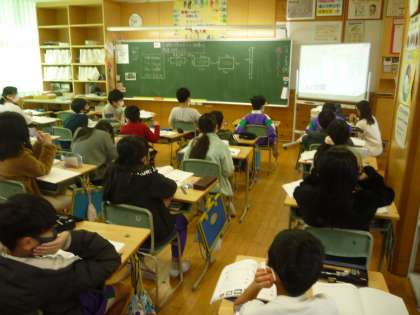習熟度別での面積の学習の様子です。1平方メートルはどれくらいの広さなのか、実際に確かめてみました。