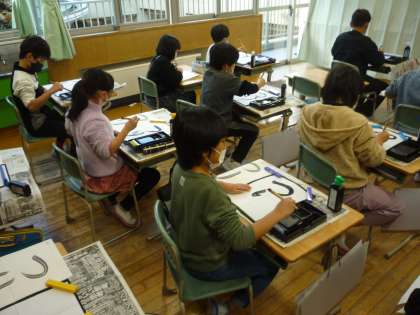 書写の学習では、ひらがなの丸みを意識して「つり」を書きました。