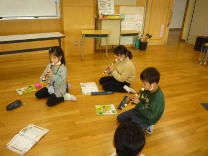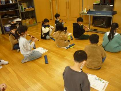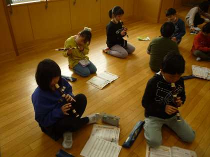 「パフ」の練習をしています。タンニングに気を付けて吹いています。