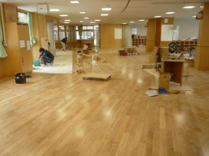 床の張り替え作業も進んでおり、きれいな床が広がってきました。