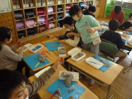 食べたいものを粘土で作りました。中には、鰹のたたきという渋い食べ物もありました。