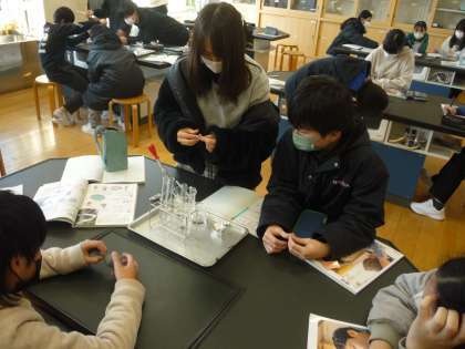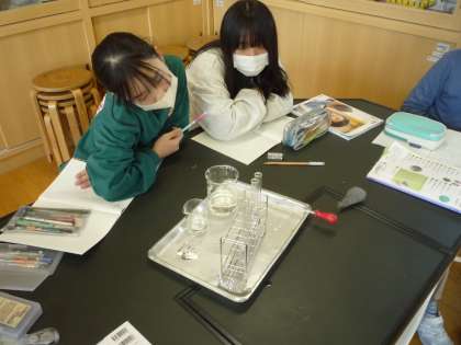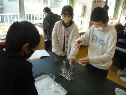 酸性の水溶液が金属を溶かすかの実験をしています。
